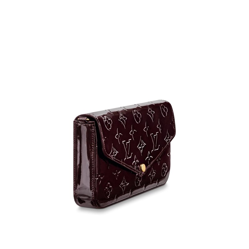 パテントカーフレザーにアイコニックなモノグラム・パターンのエンボス加工を施したモノグラム・ヴェルニ レザーの「ポシェット・フェリシー」。取外し可能な2つのポケットを備えた、あらゆるシーンにマッチするエンヴェロップ型のポーチです。取外し可能なゴールドカラーのチェーン付きで、ショルダーバッグやクラッチバッグとしてもお楽しみいただけます。 40代女性の毎日にふさわしい品格と、人生を楽しむ気持ちをくれるブランドです。
